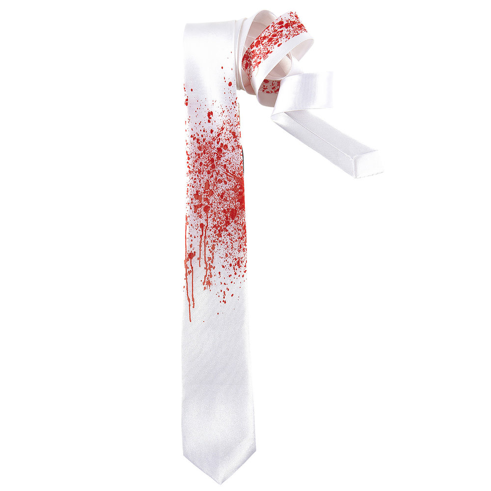 Halloween stropdas met bloed is wit van kleur en voorzien van nep bloedspetters. Past mooi bij uw griezelkostuum met Halloween. Voor puike halloween jurkjes, Halloween kostuums en horror accessoires zit je goed in deze Zombie kelder vol met enge Halloween en carnavals spullen.
