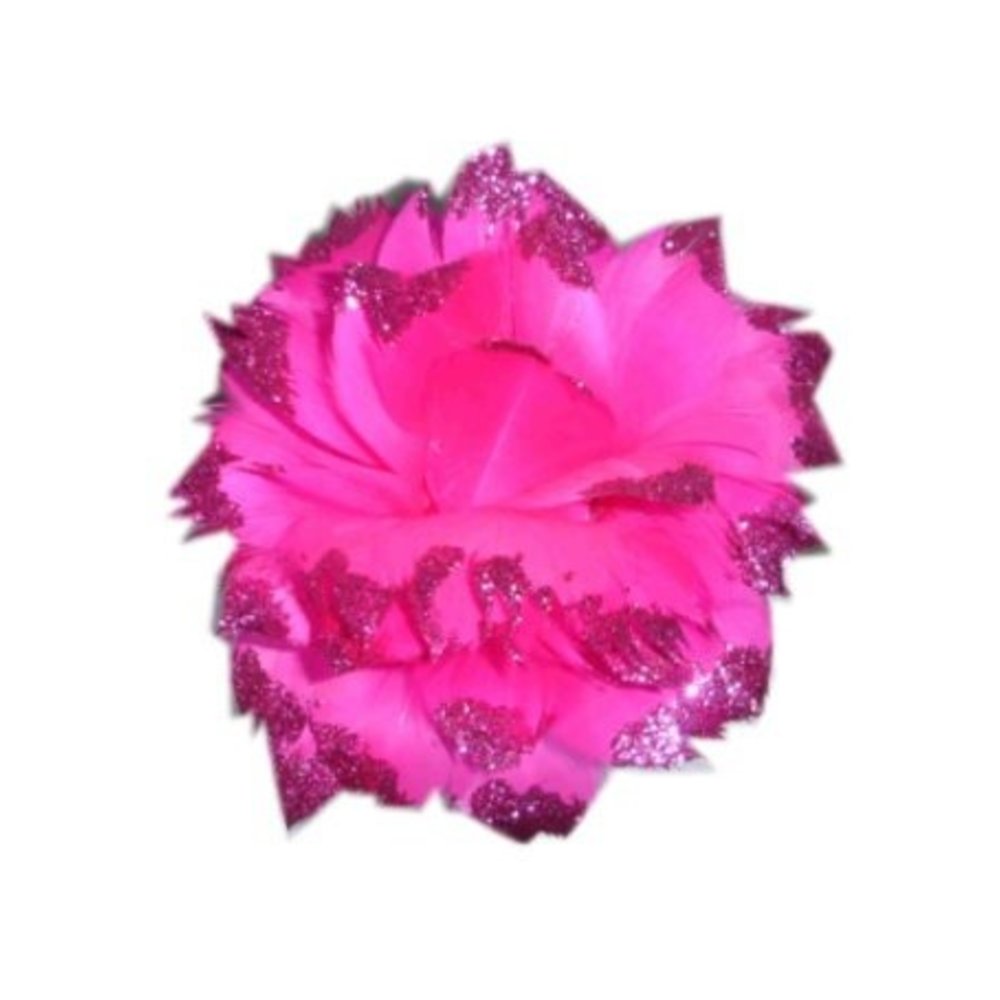 Dit artikel omvat een mooie roze bloem met glitters, aan de achterzijde is deze voorzien van een ijzerdraad zodat u deze makkelijk kunt vastmaken.