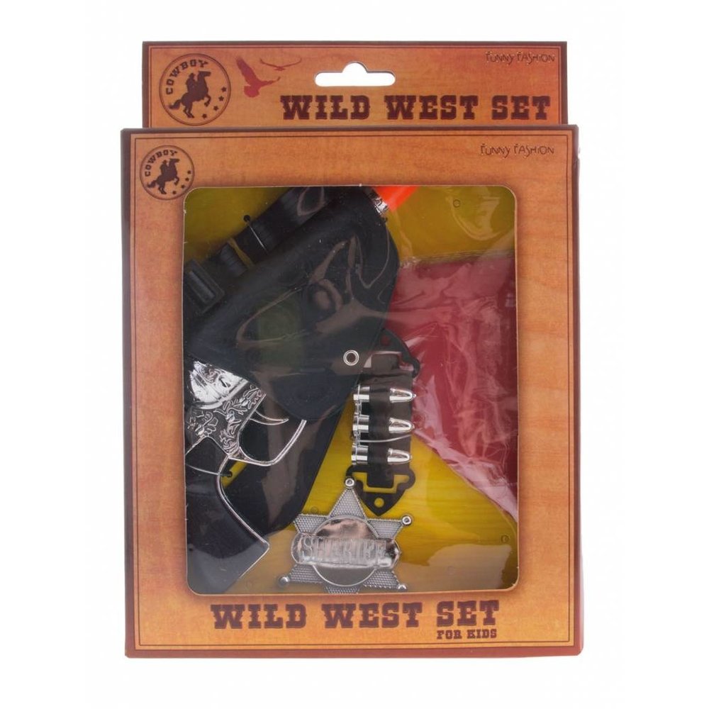 Ruige cowboy set Jesse 5-delig omvat riem met holster, Pistool, bandana, sheriff ster en kogels
