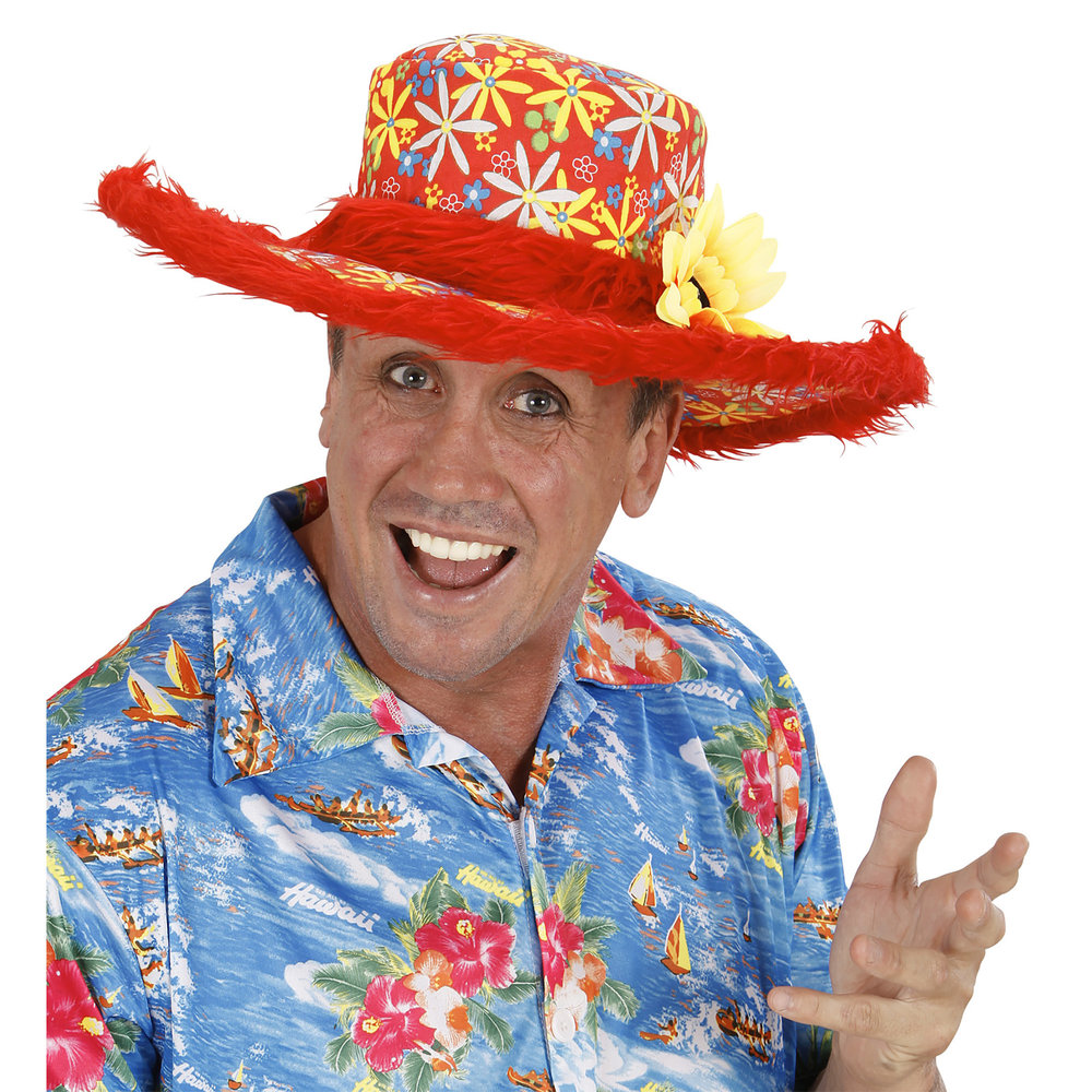 hoed ibiza met zonnebloem, rood