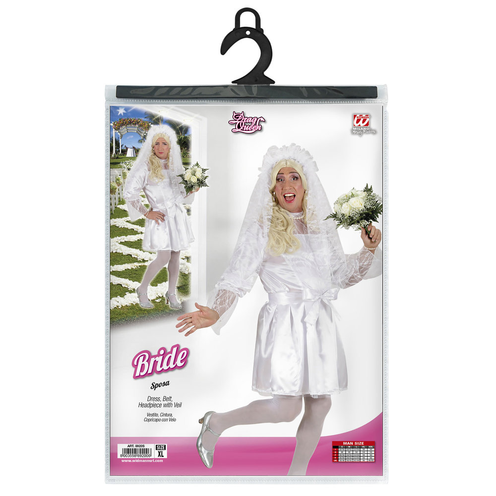 Deze bruidsjurk voor mannen is helemaal top voor vrijgezellenfeesten. Zie je de aanstaande bruidegom al bier halen in deze prachtige bruidsjapon. De vrijgezellenavond zal hem eeuwig heugen in dit te gekke bruidsjurkje. Denk ook eens aan de prachtige bruidsfoto's die zijn vrijgezellenavond alvast op gaat leveren. Leuk voor facebook. Waarschijnlijk wordt om die bruidsfoto's meer gelachen dan om de echte bruidsfoto's de dag erna.