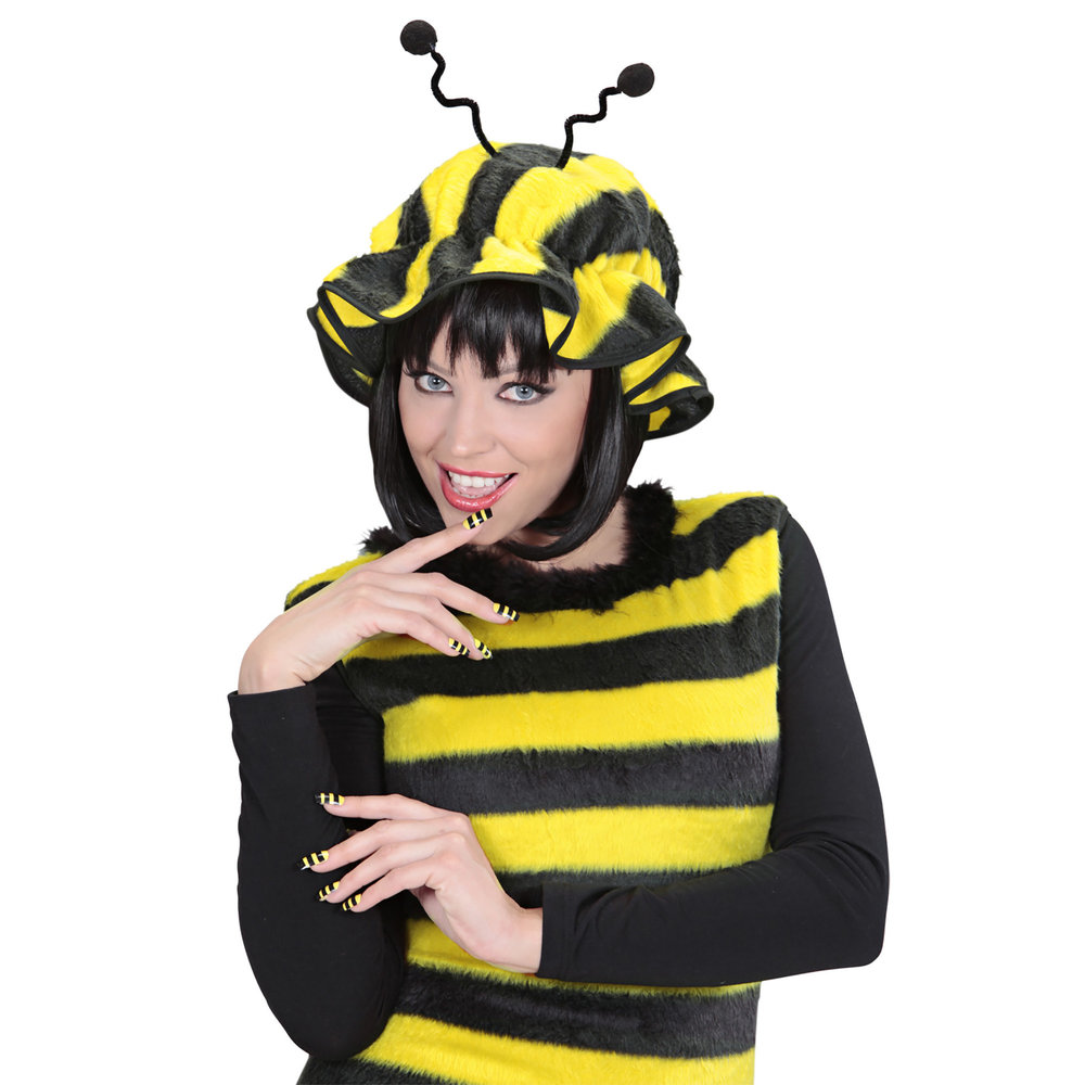 Deze leuke plaknagels in geel met zwarte strepen zijn speciaal voor bij de bijenpakjes en bijenjurkjes op deze feestsite. Deze nep nagels laten zich gemakkelijk aanbrengen en ook weer verwijderen. Ook jouw handen veranderen in echte bijenpootjes. Leuk toch!!