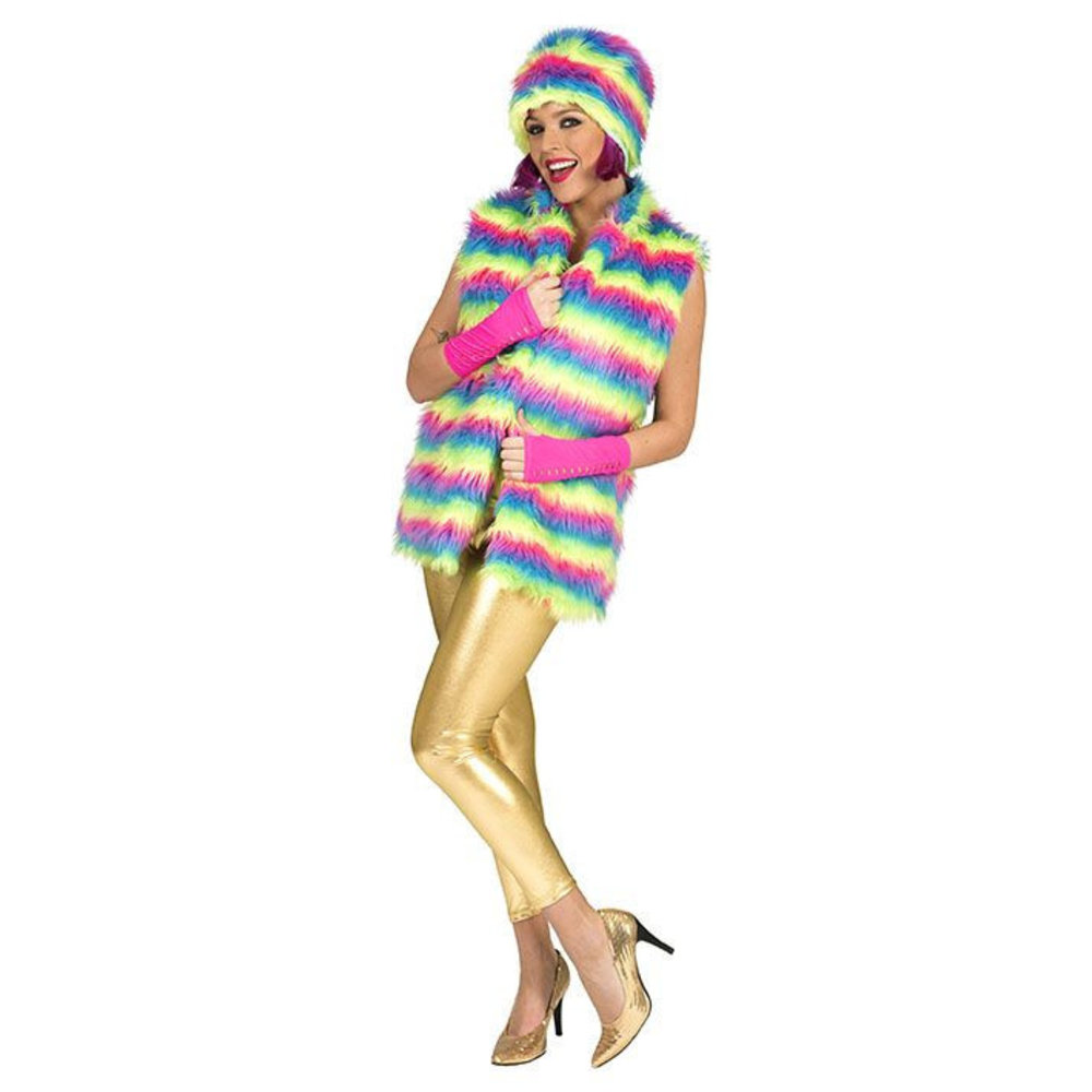 Mooi bontmuts die geleverd wordt in regenboog kleuren. De regenboog bontmuts wordt gekleverd in one size fits all en past uitstekend nij de regenboog jas uit dezelfde collectie. Super mooi verkleed met carnaval.
