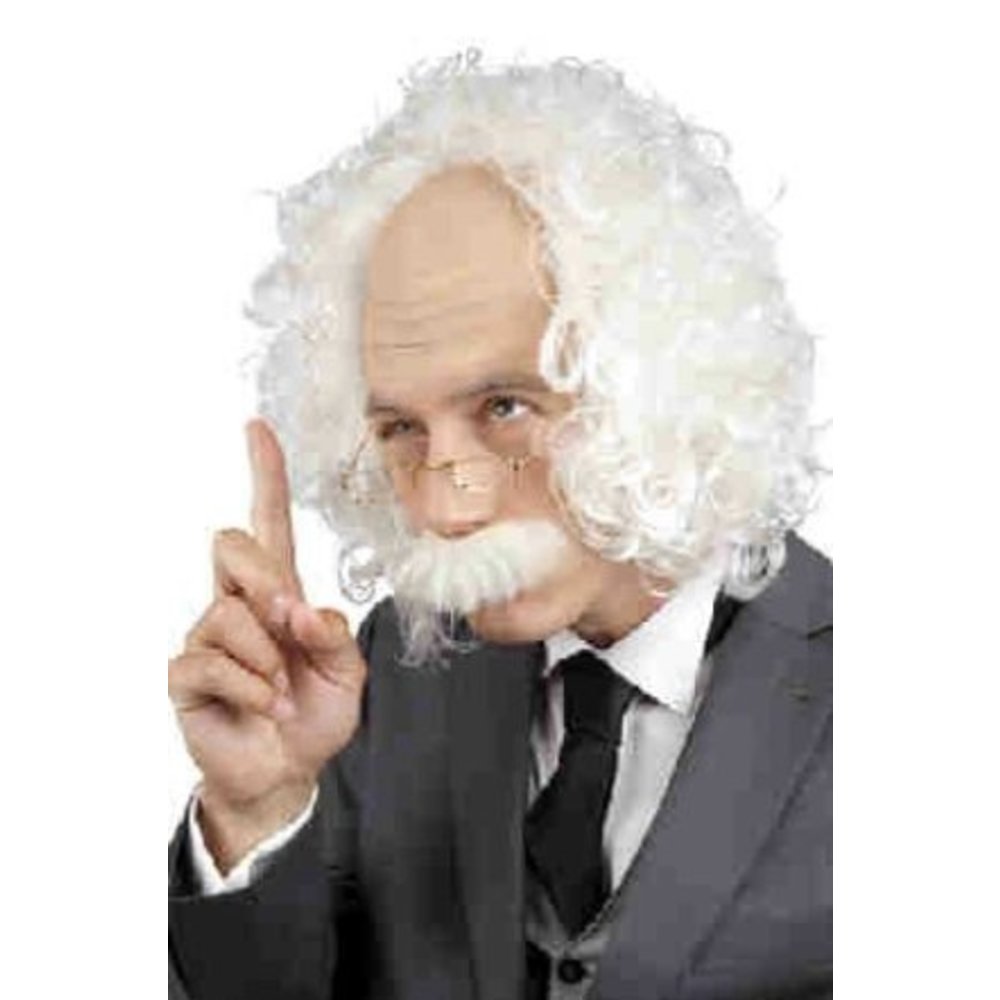 Leuke kale kop professor Noud met wit krullend haar inclusief snor en bril