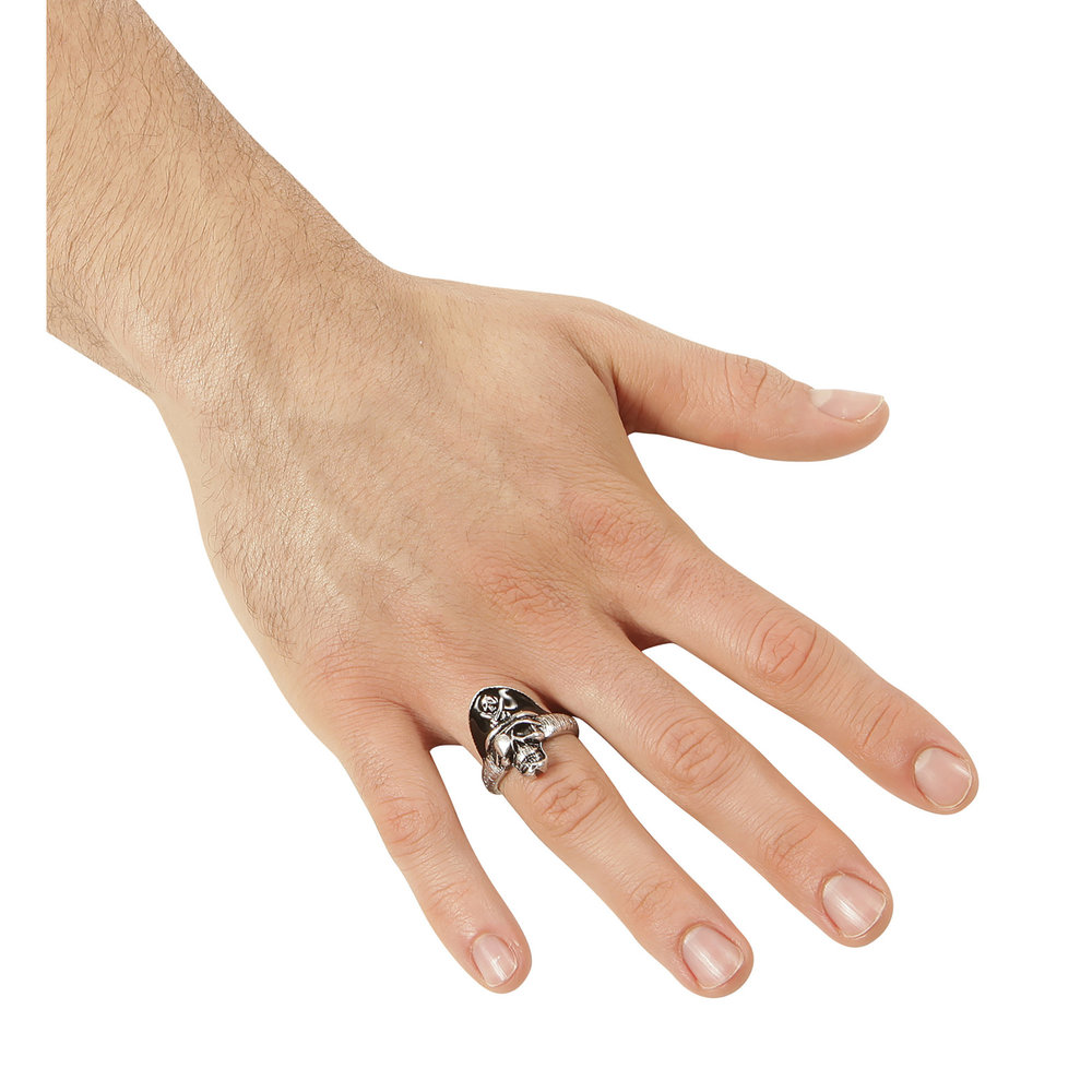 Mooie nep zilveren piraten ring met schedels