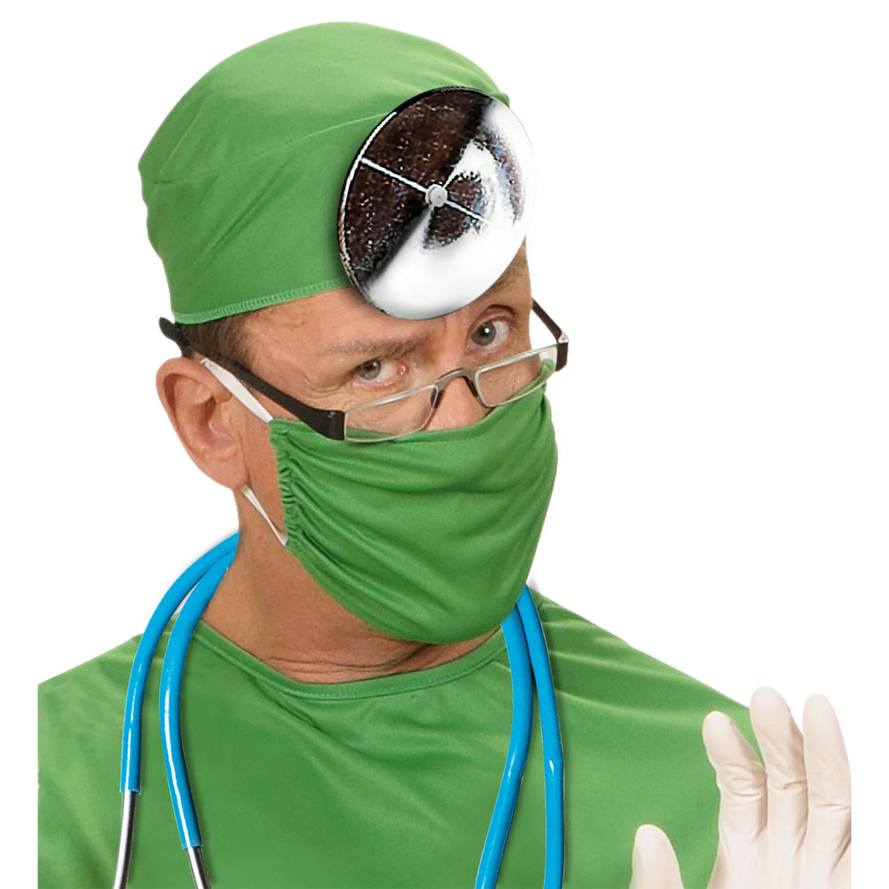 Spuitende dokters spiegel voor carnaval