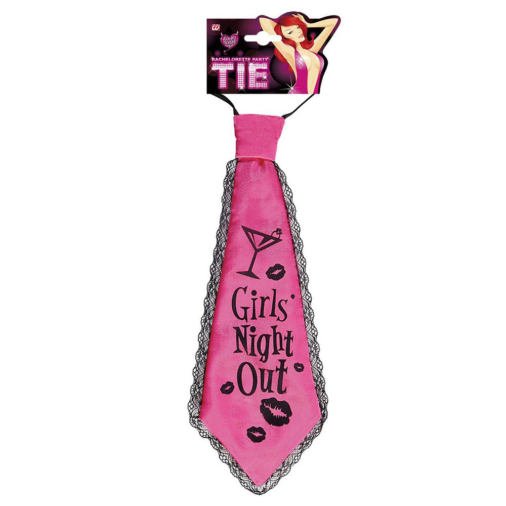 Deze grappige Girls Night Out stropdas is een leuke manier om snel duidelijk te maken dat de meiden op stap zijn. Deze henparty gadgets kun je verder aankleden met de vele andere vrijgezellenfeest  accessoires en henparty feestkleding die volop te vinden is op deze feestsite. Er zijn nog veel meer lachwekkende spullen voor spetterende vrijgezellenavonden en henparty's te vinden  te vinden in deze online Bride to Be feestwinkel.